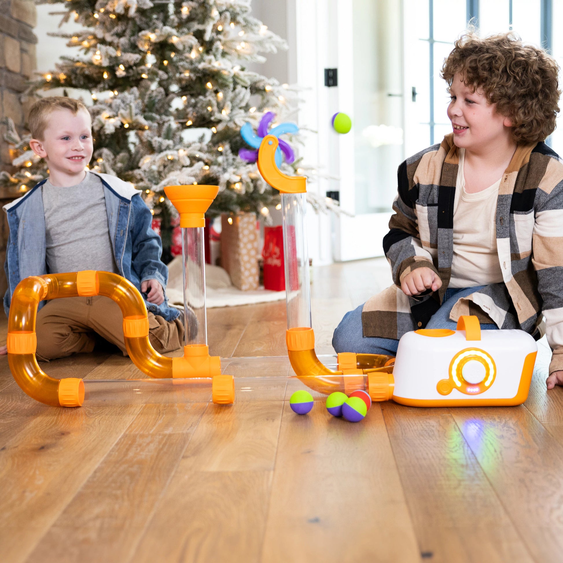 Windy dances wildly with the airflow while Whirly spins to kick the foam balls as they're launched from the tube. Both easily attach to the end of any tube.