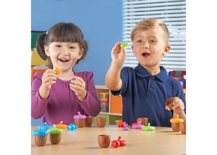 - COLOR RECOGNITION: In addition to learning their ABCs, kids can also work on their color recognition skills, or even practice making simple words out of the acorns' letters.