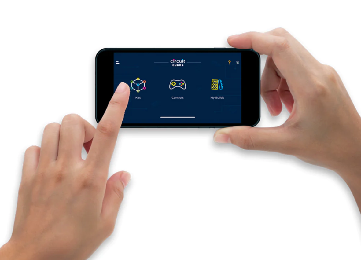 The Bluetooth Battery Cube has built-in wireless connectivity. The switch on the Bluetooth Cube has 3 positions, ON/OFF/BLUETOOTH. Move it to ON and the LED on top turns green and it’s ready to power your builds. Move the switch to BLUETOOTH and the LED flashes blue waiting to be paired with your device. Just launch the Circuit Cubes App and open the Bluetooth screen by tapping on the icon in the upper right. Once you pair the Bluetooth Cube with your smartphone or tablet, the LED turns blue. You are now in remote control any of the three outputs with the app.