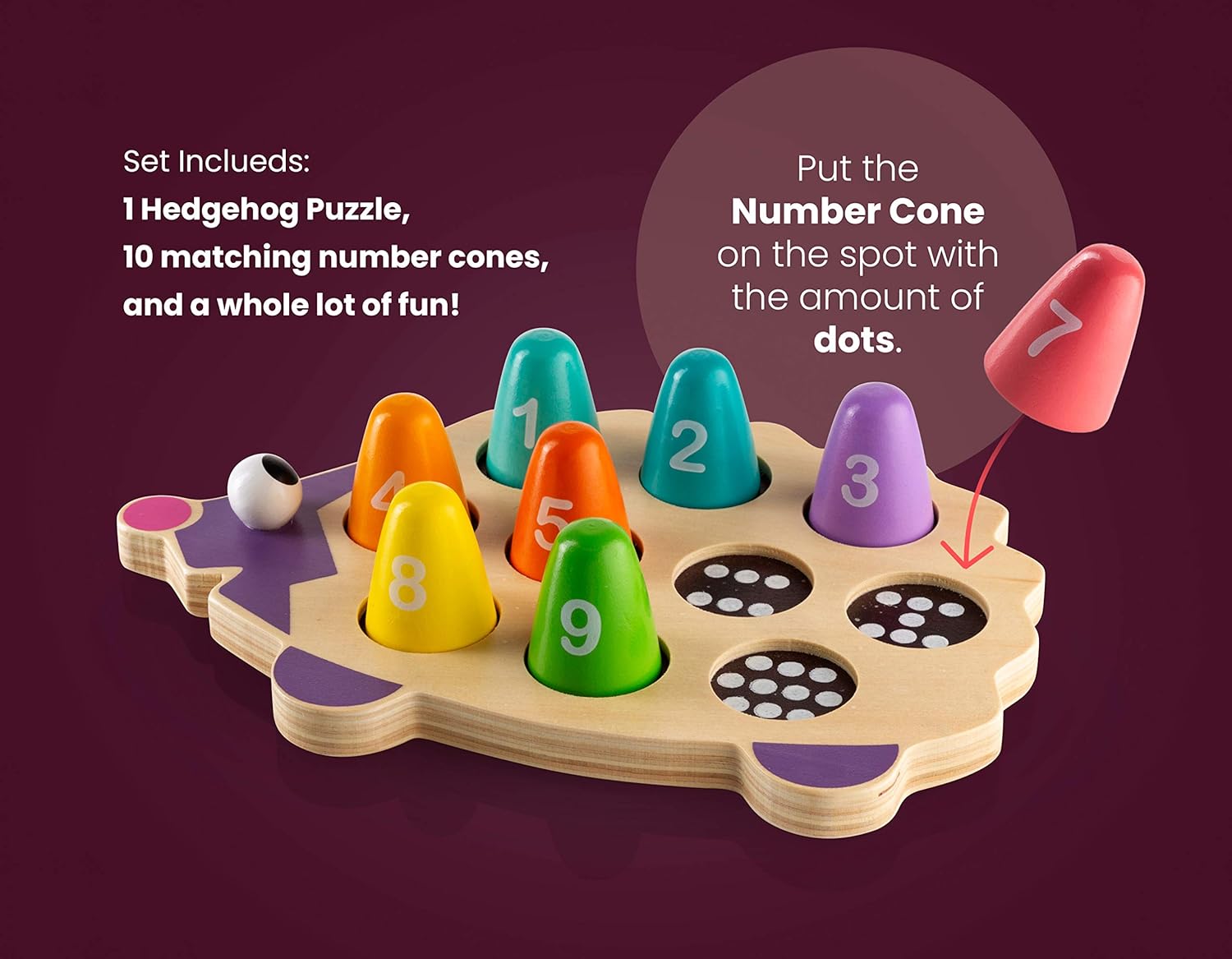 Fun: A 2- in-1 Toy and Teaching aid, this game allows your child to learn and develop important cognitive functions, even while at play! With its Fun-colored, Exciting design, and oh-so-cute Baby Animal face, this puzzle comes equipped with 10 accessory colored cones that pair with the corresponding numerals. Your child will simply match all the numbers on the hedgehog and create a 3D version of their very own adorable baby animal!