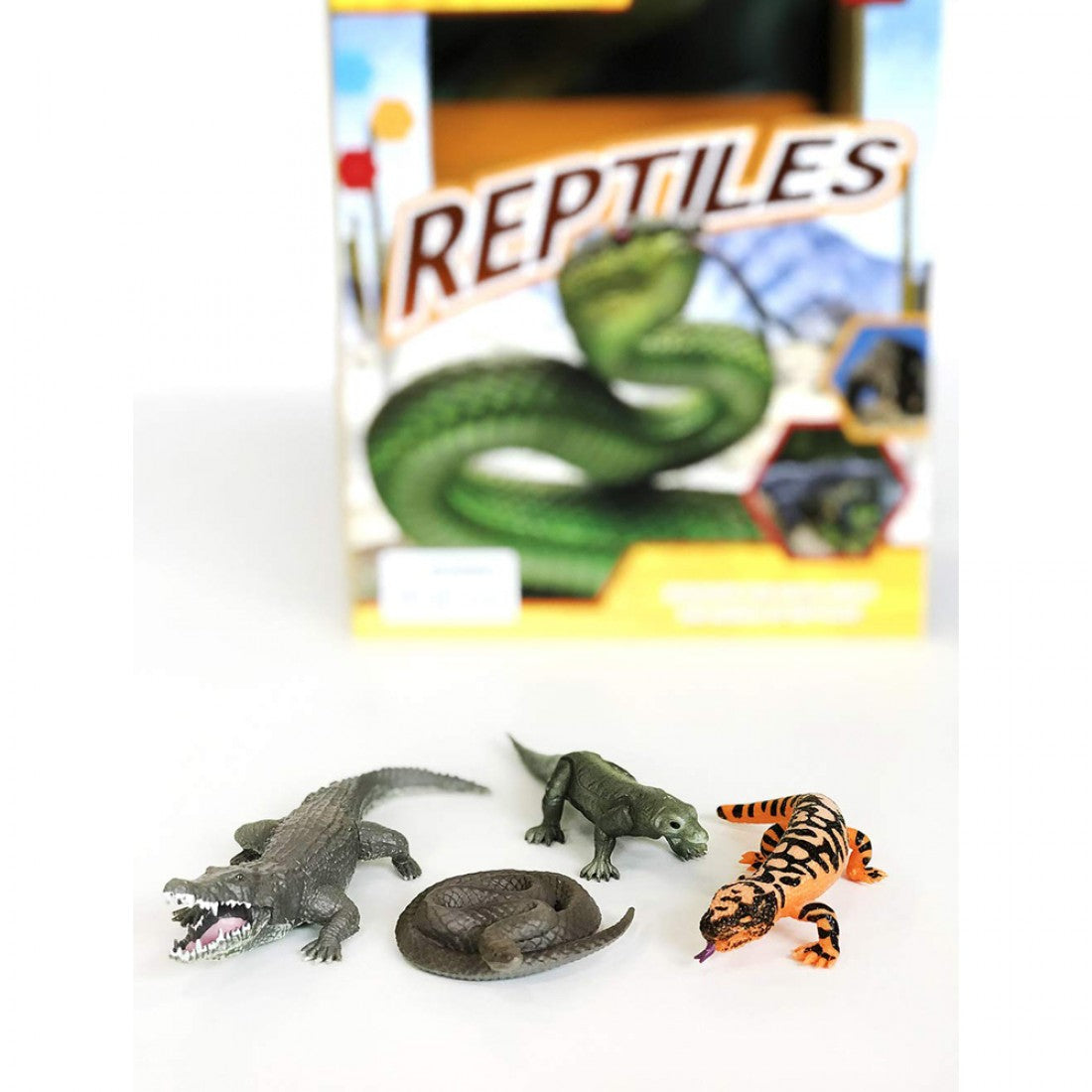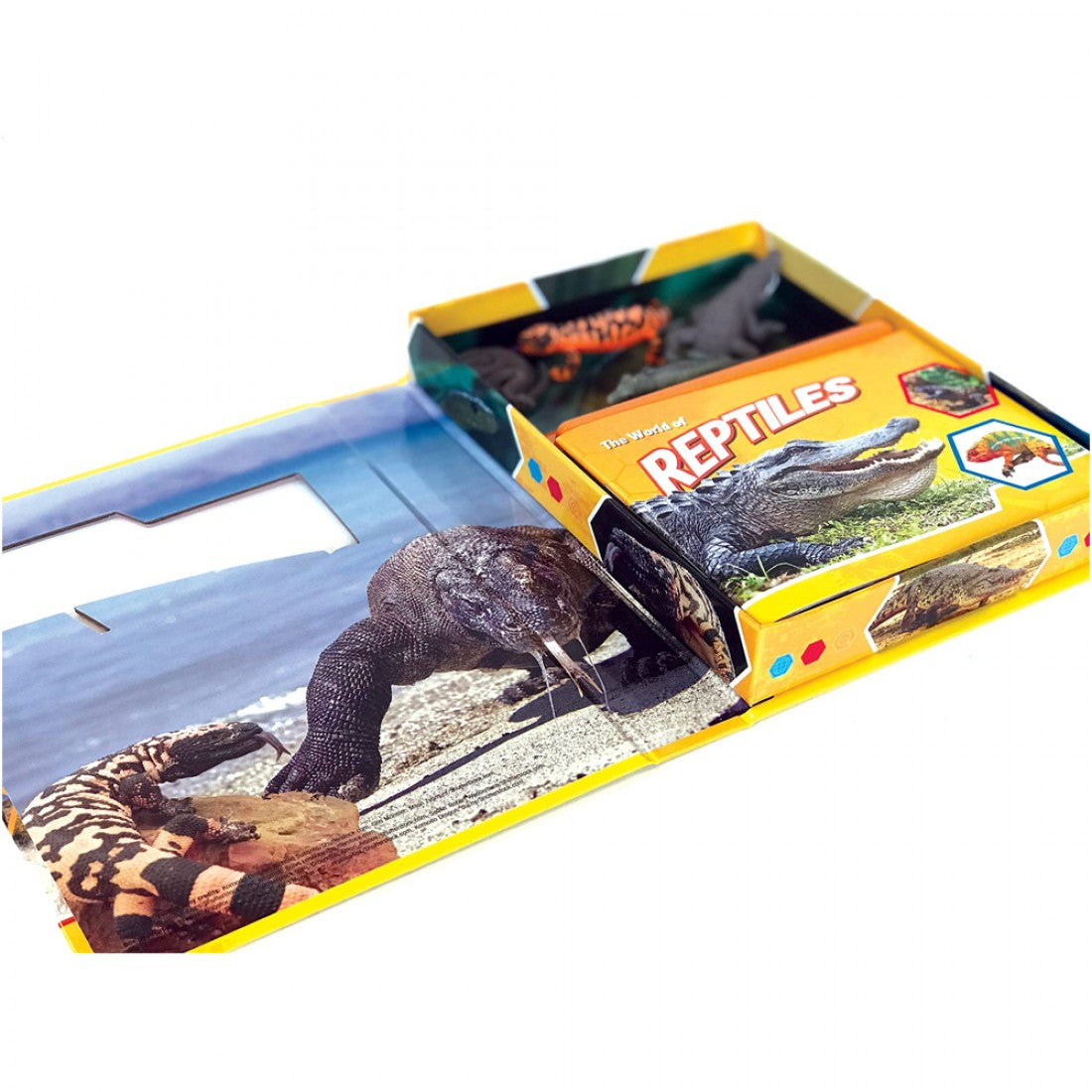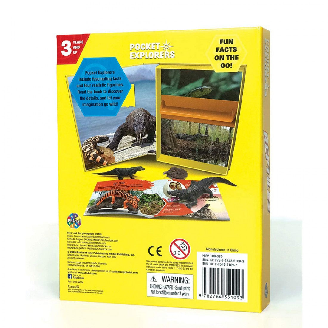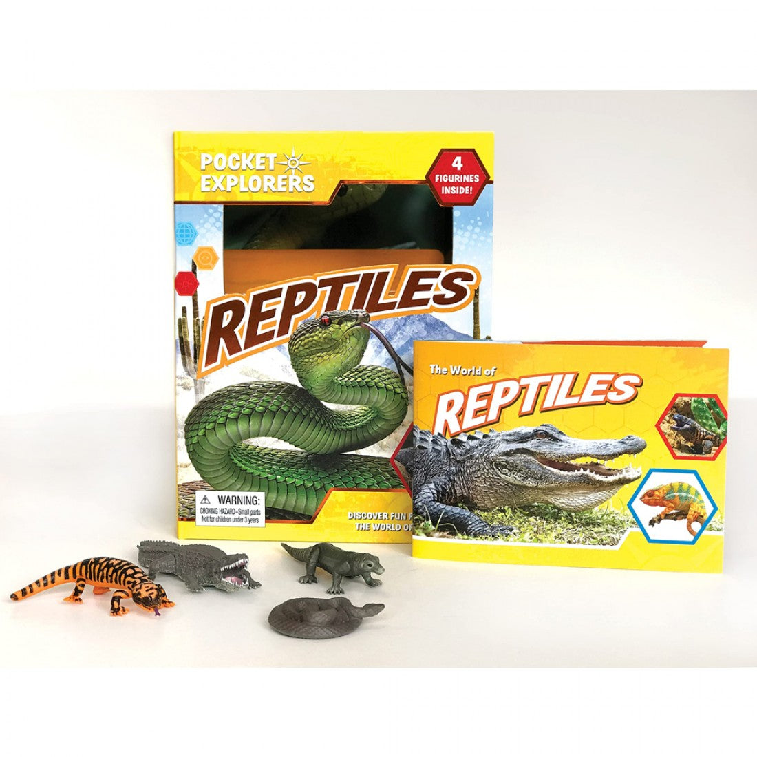 Discover the vast world of reptiles in this adventurous activity kit, filled with fascinating facts and up-close photos of these cold-blooded vertebrates. Learn about the many species of reptiles that live among us, including snakes, crocodiles, turtles, chameleons, and more! Children ages 36 months and up will love exploring the pages of the pocket-sized booklet with the four realistic figurines included in the boxset. Use the figurines to bring the photos to life and let your imagination go wild!