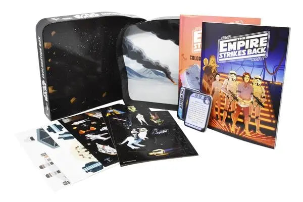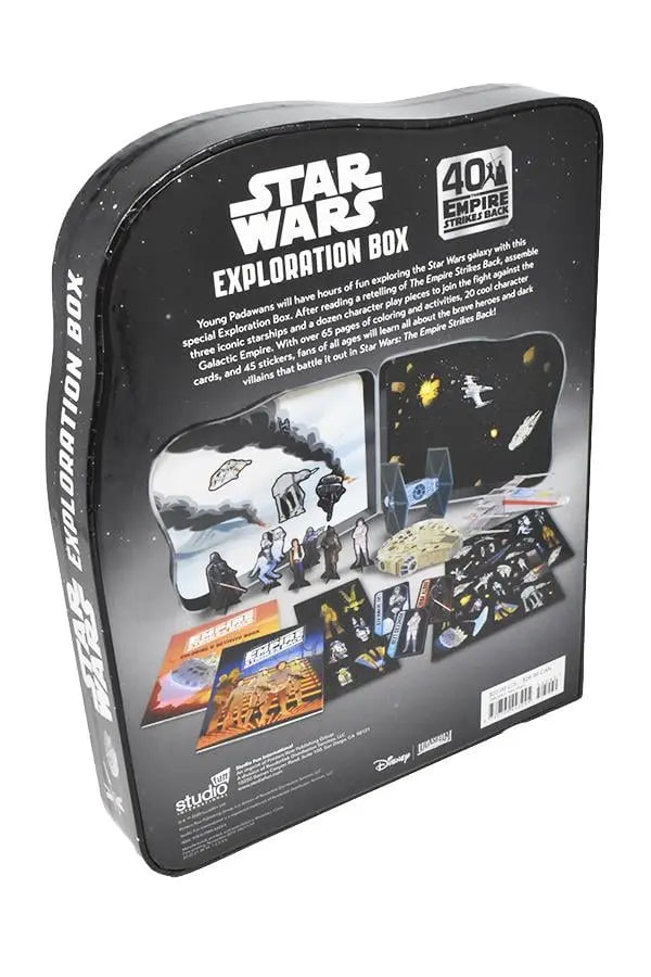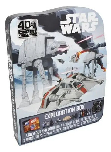 Young Padawans will have hours of fun exploring the Star Wars galaxy with this special Exploration Box. After reading a retelling of The Empire Strikes Back, assemble three iconic starships and a dozen character play pieces to join the fight against the Galactic Empire. With over 65 pages of coloring and activities, 20 cool character cards, and 45 stickers, fans of all ages will learn all about the brave heroes and dark villains that battle it out in Star Wars: The Empire Strikes Back!