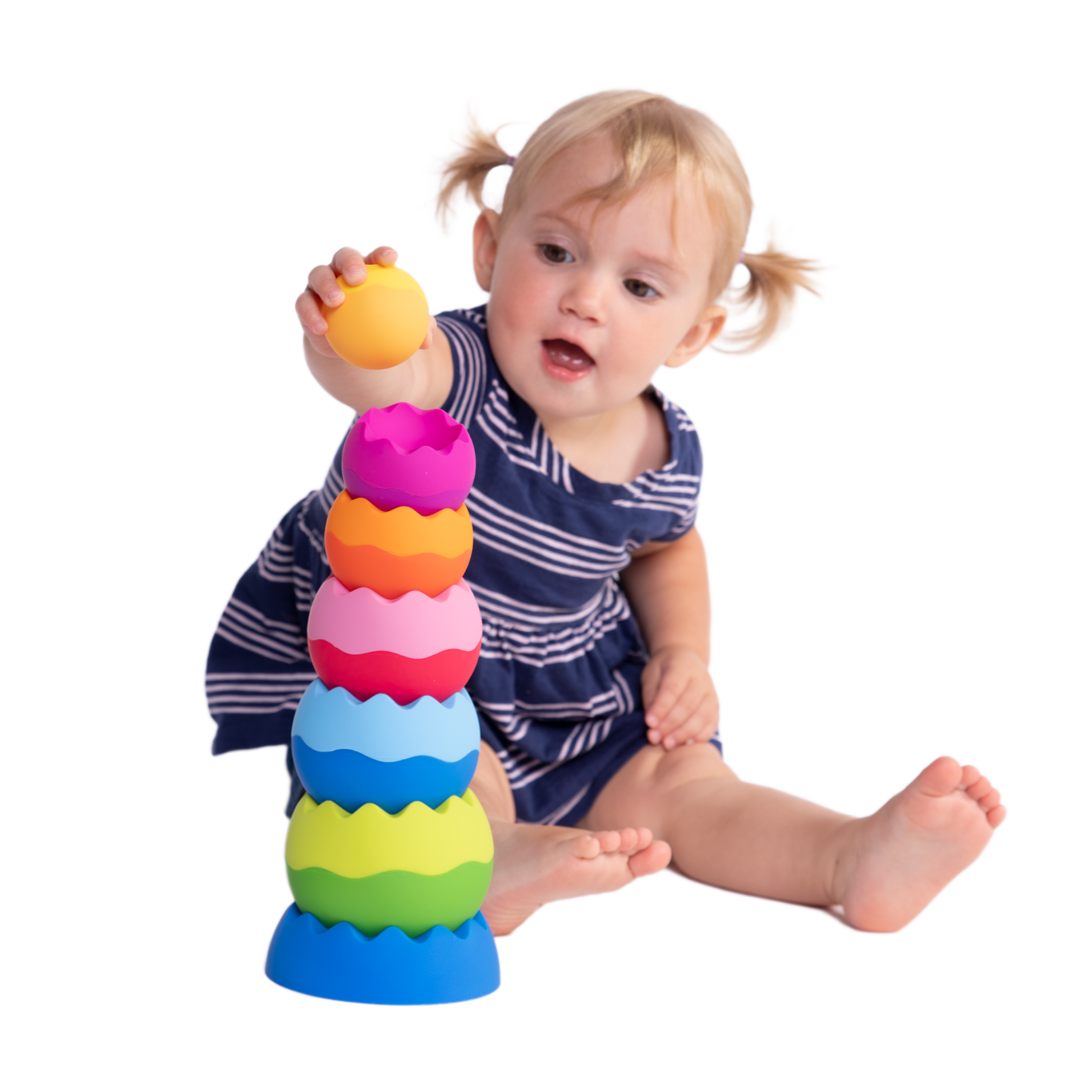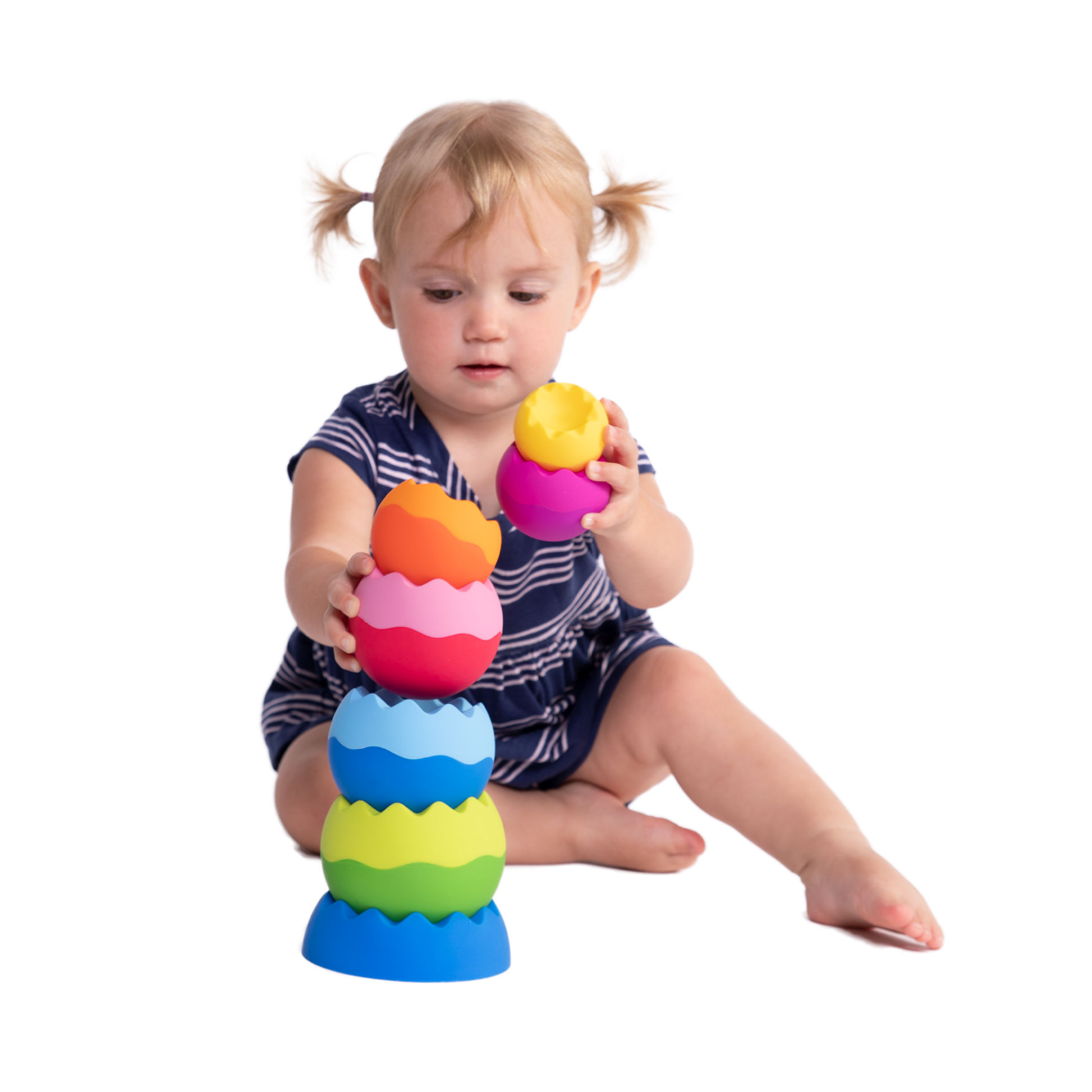 Little hands can’t get enough of the stacking, toppling, spinning, balancing, wobbling, tilting, and wiggling! Another welcome invitation to timeless play.