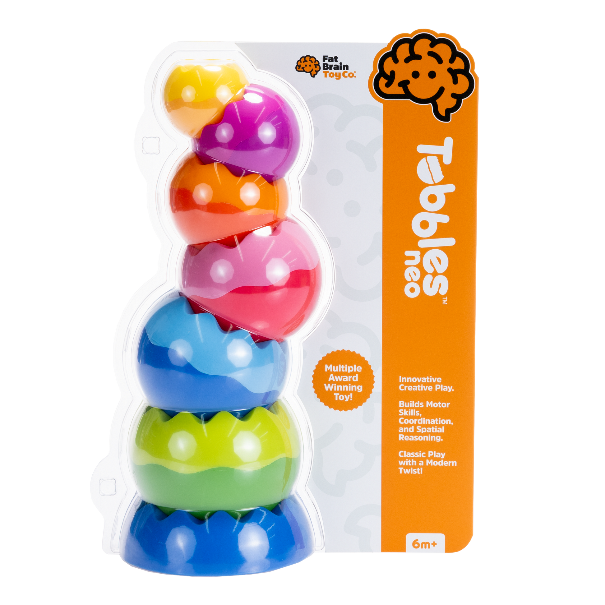 Young minds revel in stacking, toppling, and the discovery of endless ingenuity with Tobbles Neo. Six uniquely weighted pieces balance, neatly nest, and incessantly spin beyond your expectations.