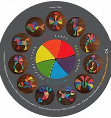 The AMAZING Chrysanthos Trigeod color wheel stem puzzle for kids is a 12 piece puzze made up a colorful 6 1/4" (16cm) diameter wheel. This shape has the extraordinary ability to create some incredibly fun designs and patterns.Challenge one another to create specific 2D shapes, or practice color naming as you play. Use the colorful manipulative set with older children to teach them basic math or symmetry. Add in other toys like cars or dolls for more interactive play. The opportunities for learning and fun are endless. The wheel made up of 12 Trigeod shapes and also makes a challenging puzzle, by itself. At first glance, the wheel just looks like an elegant design, however, with a little imagination you can look beyond and discover the intrinsic beauty of the wheel. Create flat 2D designs or build up 3D designs, limited only by your imagination. Some designs may be recognizable animals or creatures, while others are beautiful abstract shapes. The possibilities are endless and the designs are all using multiples of one simple shape. The play aspect of the wheel was discovered 12 years ago by a 9 year old boy and is only now available for everyone to enjoy and be amazed by its unusual properties. The wheel is very easy to play with and stimulating for children…. it mesmerizes those that dare play with it. Unleash your imagination with this truly unique product. The Chrysanthos Trigeod Color Wheel Puzzle has been certified safe for children 2+ and has passed all required safety testing. When kids play with our color wheel puzzle, they will: Develop their spatial memory; Work on their problem-solving abilities; Learn to distinguish patterns, a foundation for learning math; Understand about symmetry; Challenge and grow their imagination. Designed safety in mind, this product meets all U.S., Canadian, and European safety standards. Children ages 3+ can safely enjoy our trigeod puzzle. The large wooden pieces are smooth and durably made to withstand years of use.