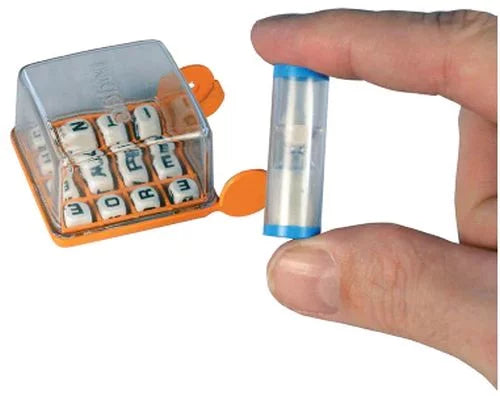 Play the classic game Boggle in miniature size! Outplay your friends in 90 seconds! Players write down as many words as they can find on the grid before time is up! Find the most words to win!